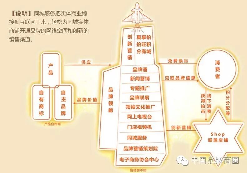 中国品牌总网O2O商圈利益共同体是产业整合的生态型平台,靠"核爆业务+生态"发展的方法,从O2O模式切入营销生态服务的互联网企业,拍拍旺不仅仅定位于“轻公司”,更是服务型企业,帮助线下企业品牌化,包括营销、数据分析、客户梳理研究等,专业性要求很高,中国品牌总网O2O平台企业拍拍旺公司无疑是最佳的领跑者。