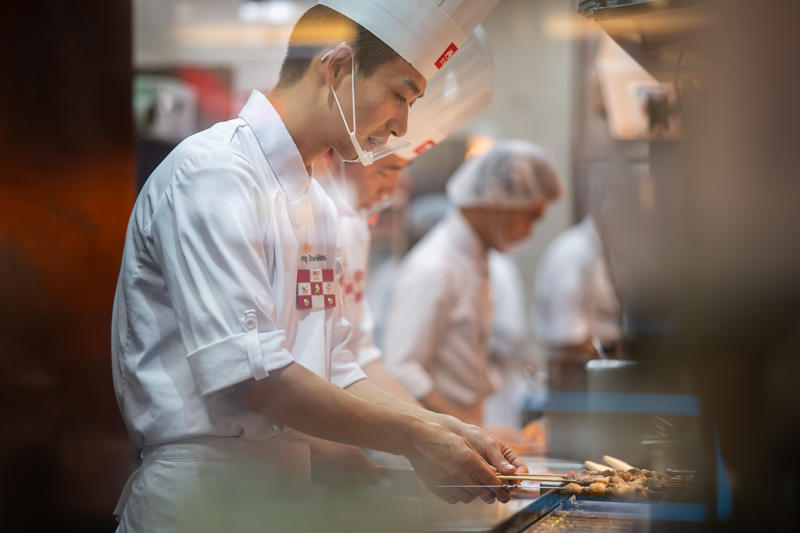 在西贝,羊肉串现穿现烤、饺子现包现煮、鸡汤现熬。