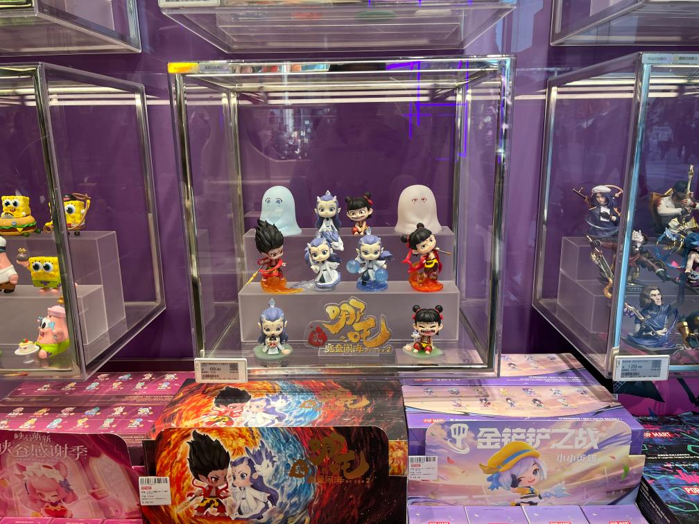 北京一家泡泡玛特门店里陈列的哪吒系列手办。