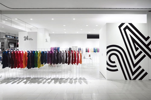 著名设计公司Nendo 以东京街头常见的24 小时便利店为灵感,为设计师三宅一生打造出全新概念的新店“24 Issey Miyake”,简洁、明快的零售空间,充满日本便利店“harmonious chaos”(和谐的混乱)的气氛。