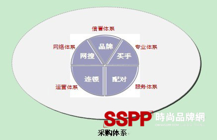 采购体系的"配对",通过从"批发驱动"到"采购驱动",更多的是如何借助"买手制"来促进采购商与批发商之间的融合和配对。围绕"DNA"采购链:让终端触手可及,让渠道五光十色。比如,上海国际时尚服饰展览会将聚集众多新锐的、富有创造力和市场潜力的品牌企业及代理商、加盟商和商场等专业买家,组办方将积极为双方打通贸易渠道,搭建一个具有个性化、时尚化、国际化的绿色、和谐的时尚采购平台。"我展,你看"的时代即将结束,优衣库的"旗舰店"模式、ZARA的"快时尚"模式、美邦的"双品牌"模式、凡客诚品的"互动网"模式正是"采购"推动"终端","终端"带动"制造"的写照;而"去批发"潮流和电子商务批发带来的"小批、零批、散批"更是催生了"银泰百货开展电子商务--银泰汇"、"广州美嘉国际服装城创新第五代市场--实体+网店"、"中纺中心拓展创意领域--设计师之家"等。也许这些模式现在看起来还只是概念,也许这些业态目前还只是个雏形,但谁能够否定这些模式之中不会是当年的"阿里巴巴"。