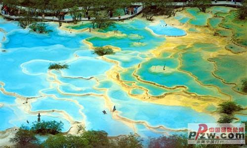黄龙风景区位于四川省阿坝藏族羌族自治州松潘县境内,主景区黄龙沟位于岷山主峰雪宝顶下,主要因佛门名刹黄龙寺而得名。它是一条长约7公里,宽约300米的钙化山峡,这里山势如龙,又称“藏龙山”。黄龙以彩池、雪山、峡谷、森林“四绝”著称于世,是中国唯一的保护完好的高原湿地。这一地区还生存着许多濒临灭绝的动物,包括大熊猫和四川疣鼻金丝猴。