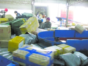 不过,人不可能像机器一样24小时昼夜无休。在现有人员不能处理翻番业务量的情况下,设备升级、增加人手成为解决爆仓最有效的途径。回忆去年旺季的工作情景,陆贤祥表示,“当时只有一条传送带,站在传送带两边的分拣工根本来不及分拣快件。在“双11”期间,看到快件量超过预期,公司立刻投入200余万元,新建了这套设备。如今增加了传送带,快件在下货的地方先以南北区分开,再在南北区内分为两拨,最后由负责各区域的班组进行分拣。如此一来,快件分拣效率大大提高,成功突破爆仓瓶颈。