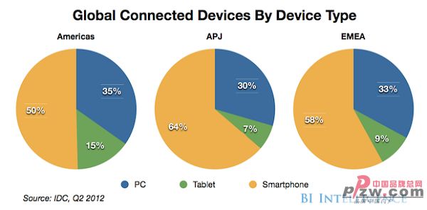 全年底,智能手机的出货量首次超过了PC的出货量,而今天智能手机已经成为接入互联网设备的主力,全球范围内斗超过了50%的份额,在亚太地区更是高达64%。