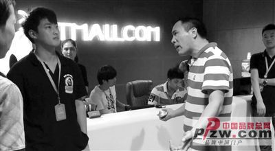 9月7日,杭州“淘宝商城”总部,前来维权的卖家和接待的工作人员在理论。
