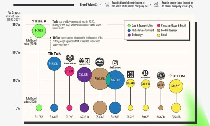 摘要:特斯拉、TikTok、拼多多排前三,美团第四,茅台第五,京东第十,中国品牌占据半壁江山