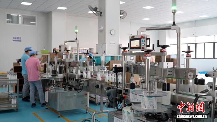 美妆小镇内某清洁用品工厂生产线。吴明宪 摄