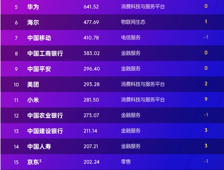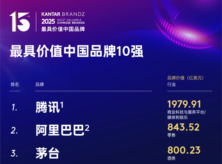 摘要:腾讯连续五年居首,阿里巴巴重回亚军宝座,茅台稳居季军
