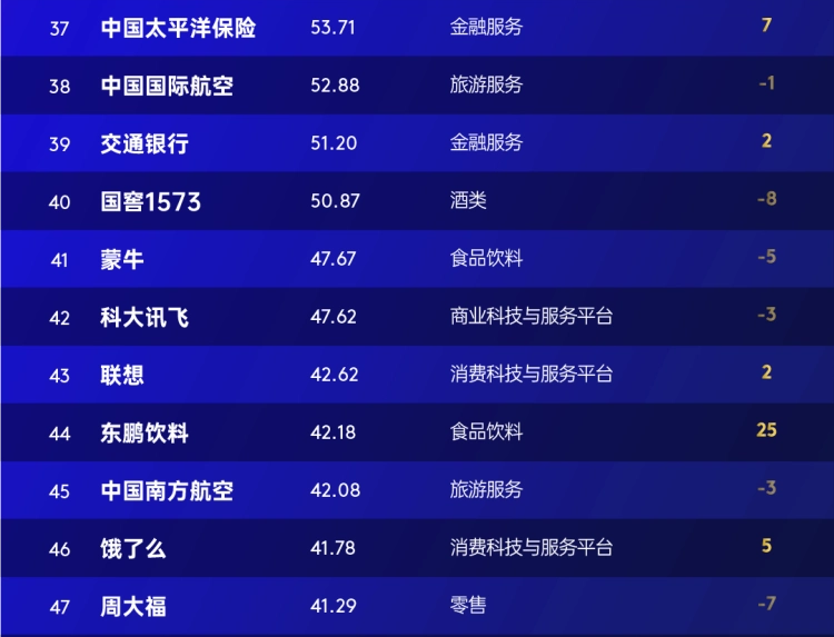 vivo(第34名,59.89亿美元)连续4年蝉联中国智能手机市场国产手机销量第一名,科大讯飞(第42名,47.62亿美元)持续拓展AI技术在教育、医疗等场景的创新实践。TCL(第76名,23亿美元)品牌全球化与情感共鸣双向奔赴。