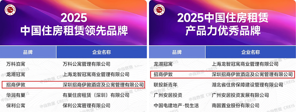 招商蛇口招商伊敦荣获“2025中国住房租赁领先品牌”殊荣