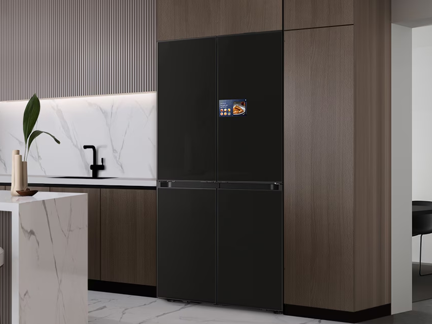 例如,三星AI神 冰箱9系(混合制冷),凭借智能压缩机与半导体制冷结合“双动力源”的技术,实现稳定高效控温,更能识别37种新鲜食材,食材管理从此“一目了然”。其9英寸AI智控大屏支持声触双控开门,如果用户双手被占用时,通过SmartThings应用程序,只需一句“三星小贝,打开冰箱门”,冰箱冷藏室门即应声开启,将省心、高效、便捷提升至新高度。