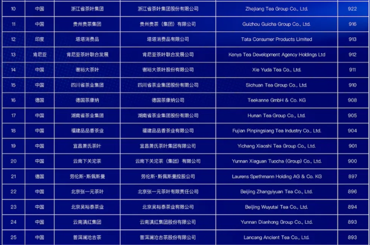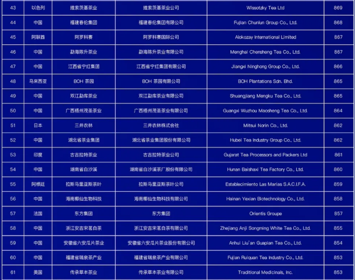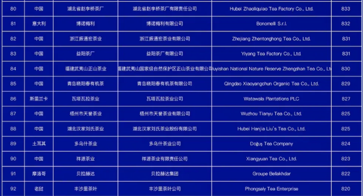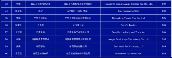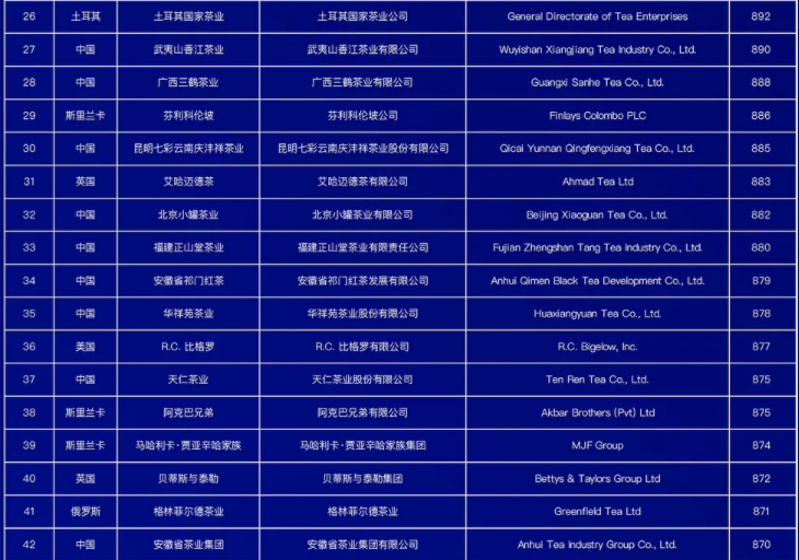 世界茶叶企业品牌榜(100强)