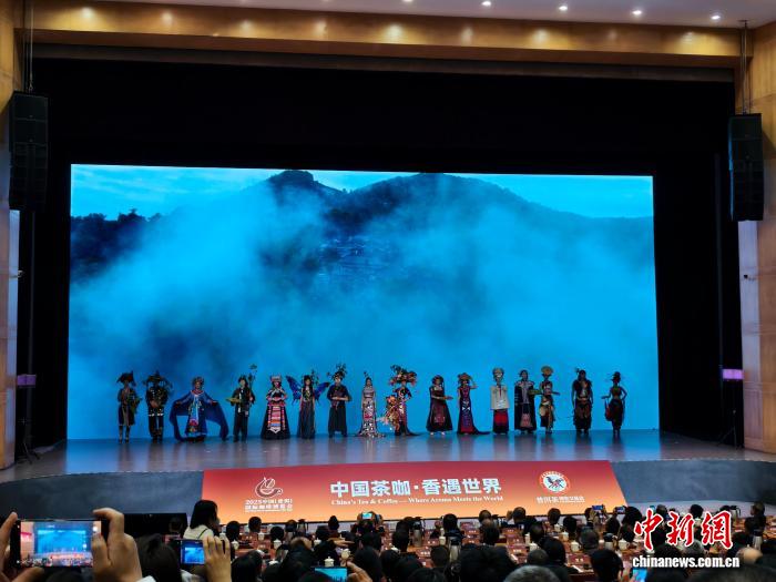 12月5日,演员在2025中国(普洱)国际咖啡博览会开幕式上表演主题走秀。中新社记者 韩帅南 摄
