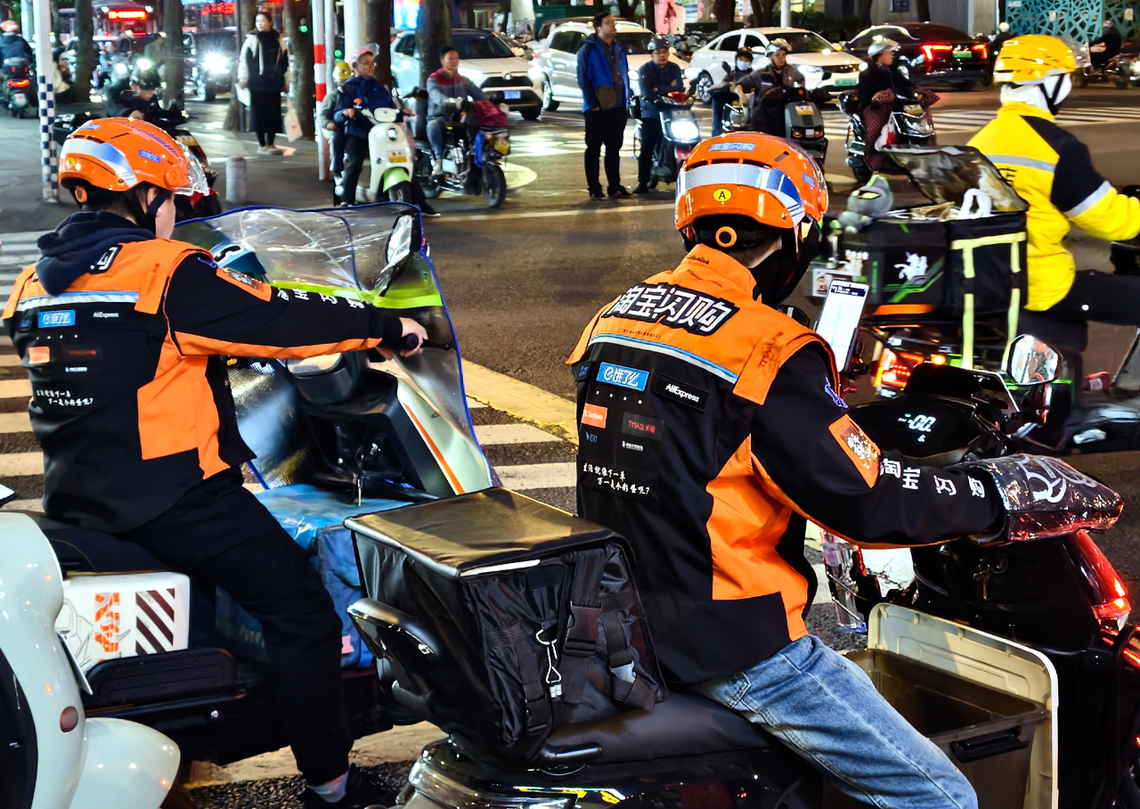 图为福建福州街头的淘宝闪购配送员。(图片由CNSPHOTO提供)