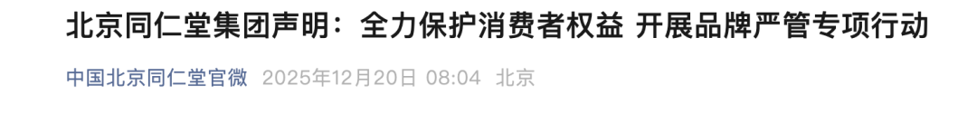 声明称,同仁堂集团立即开展零容忍品牌严管专项行动,已采取如下措施: