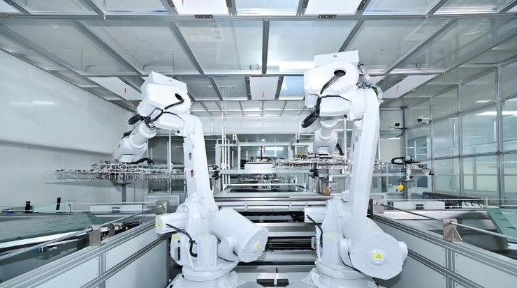 以通过机器人实现“面板自动精准卡合”这一行业首创技术为例,以往85英寸大屏面板的精准装配需要5名工人手动对齐,不仅费力,还存在精度偏差和效率瓶颈。如今,生产线搭载了行业首创的矩阵式面板精确卡合方案,通过多组高精度视觉相机为机器人赋能“眼睛”,搭配AI“大脑”实现自动撕膜、精准装配和实时校准的全流程自动化操作,它能实现0.1毫米级的精准定位,确保每次抓取和装配都毫厘不差。